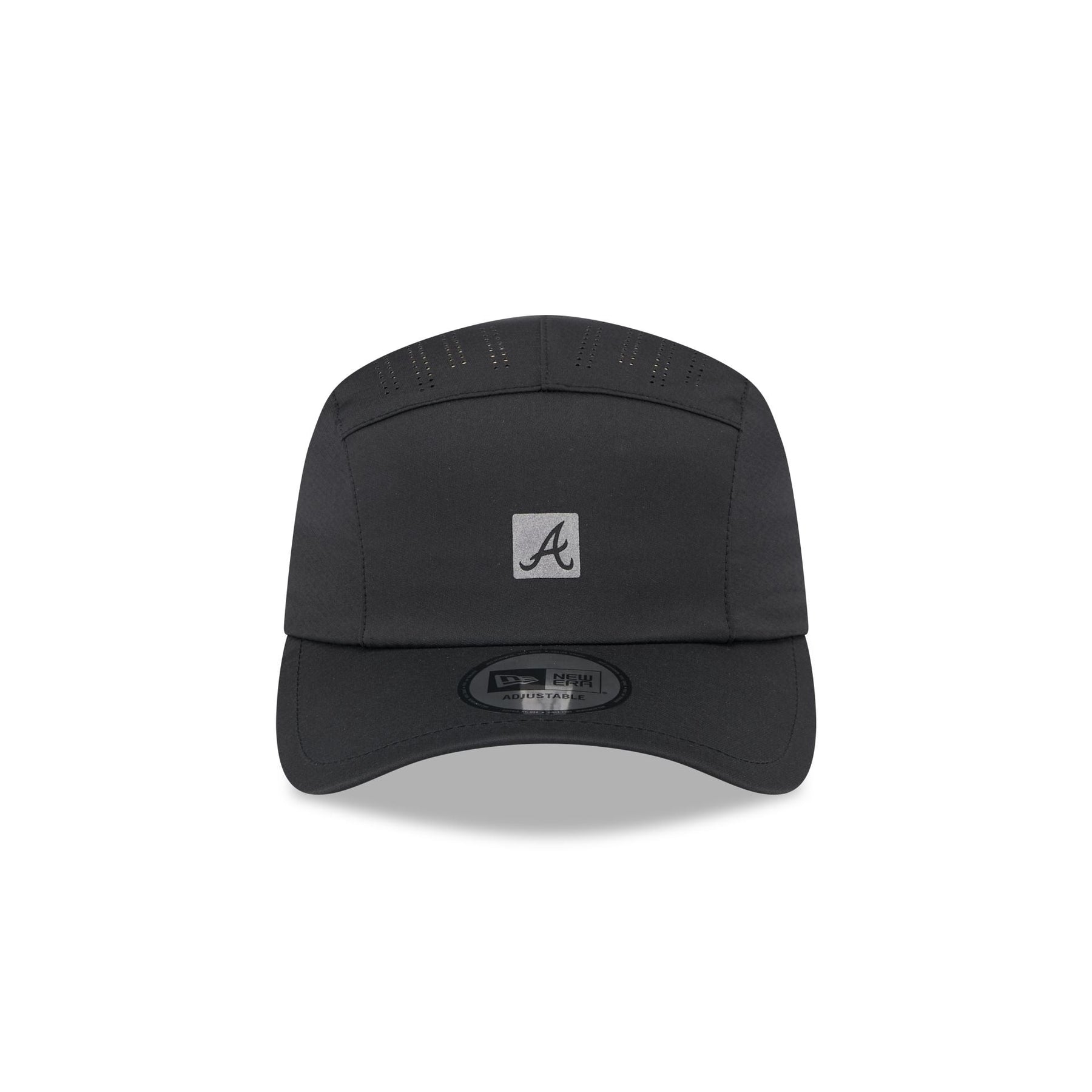 The Atlanta Braves Black Reflect Runner Adjustable Cap features a reflective screen-printed Braves logo at the front panels with an adjustable hook and loop strap at the rear.