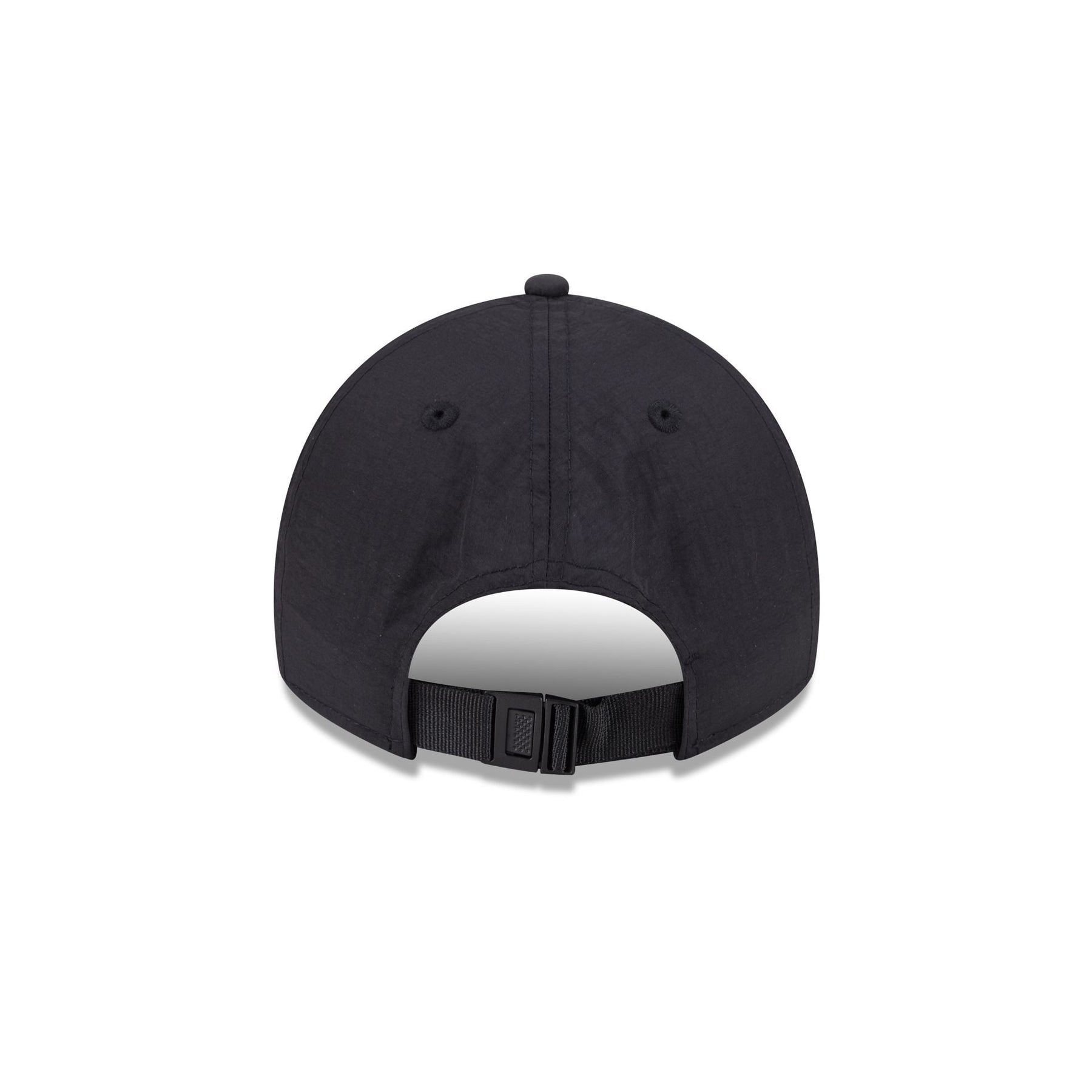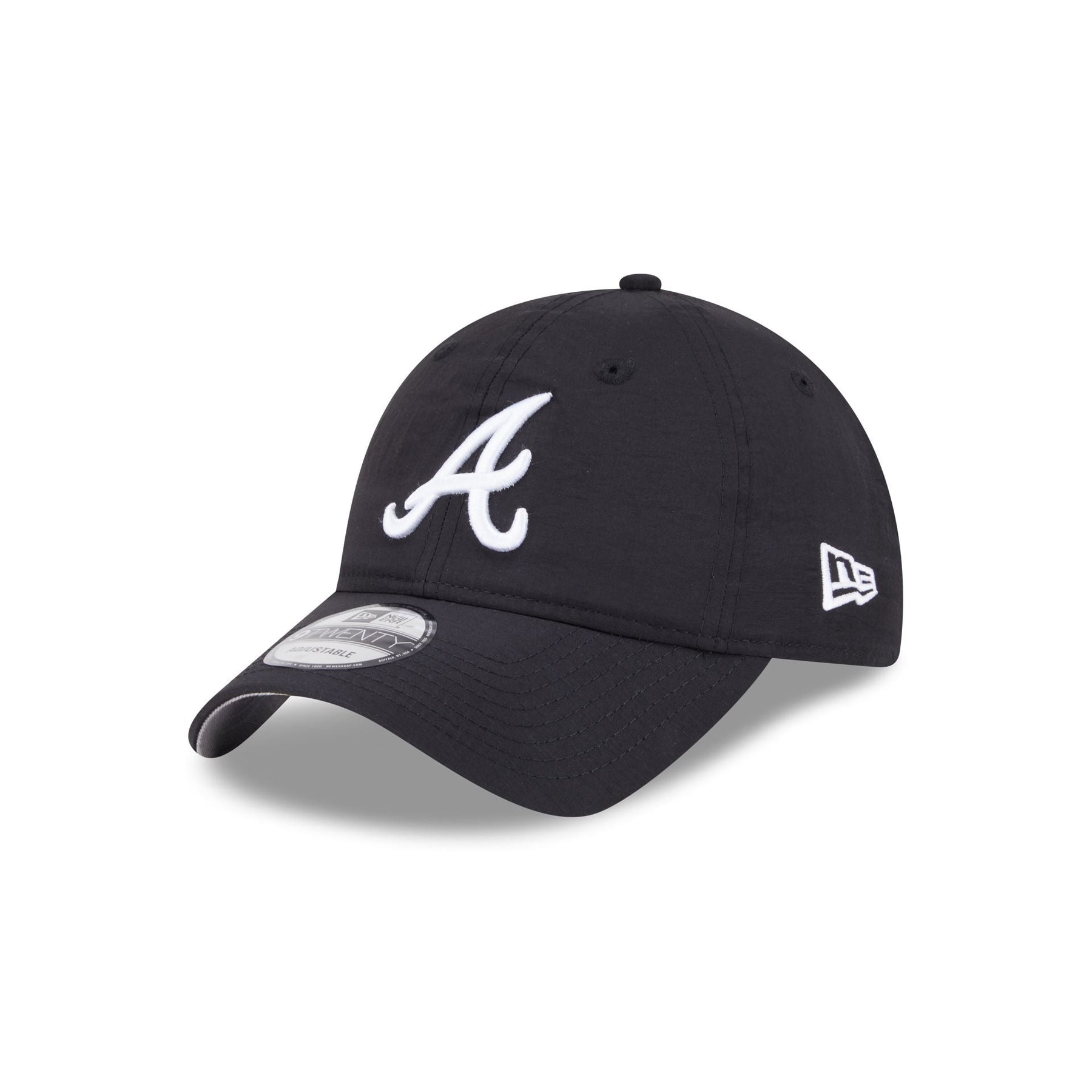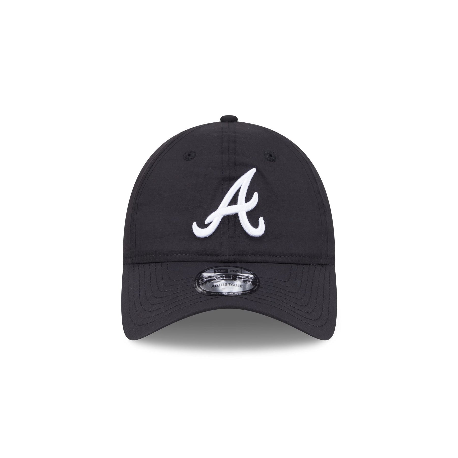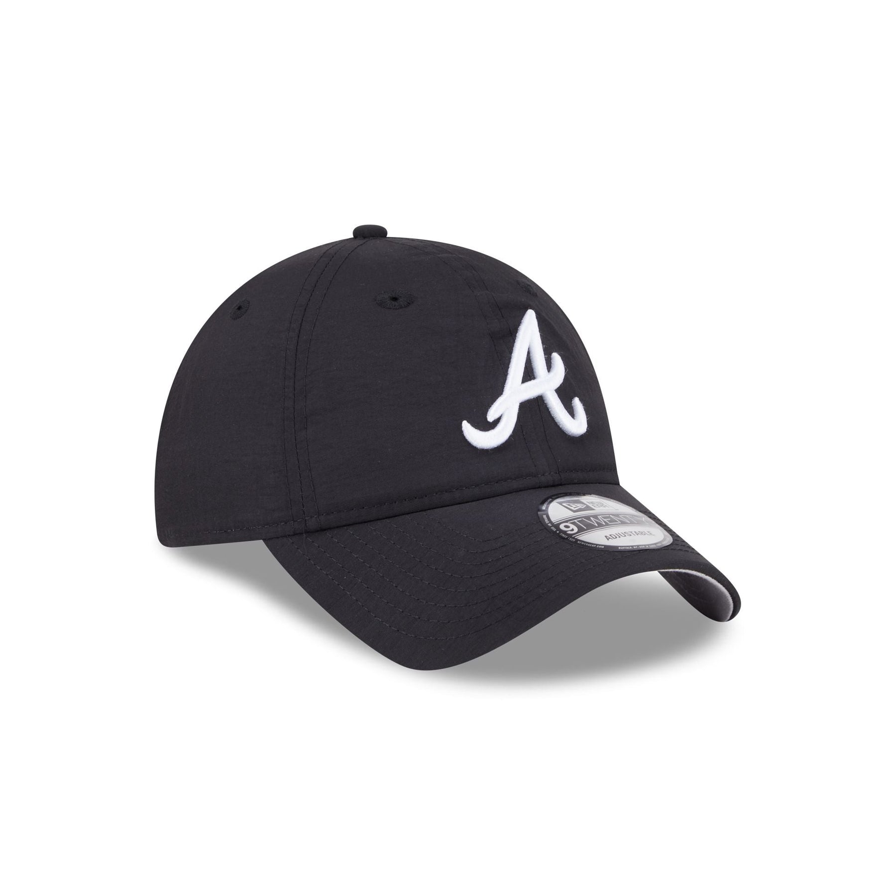 The Atlanta Braves Everyday Nylon Black 9TWENTY Adjustable Cap features an embroidered Braves logo at the front panels with an adjustable strapback closure at the rear and a gray undervisor.
