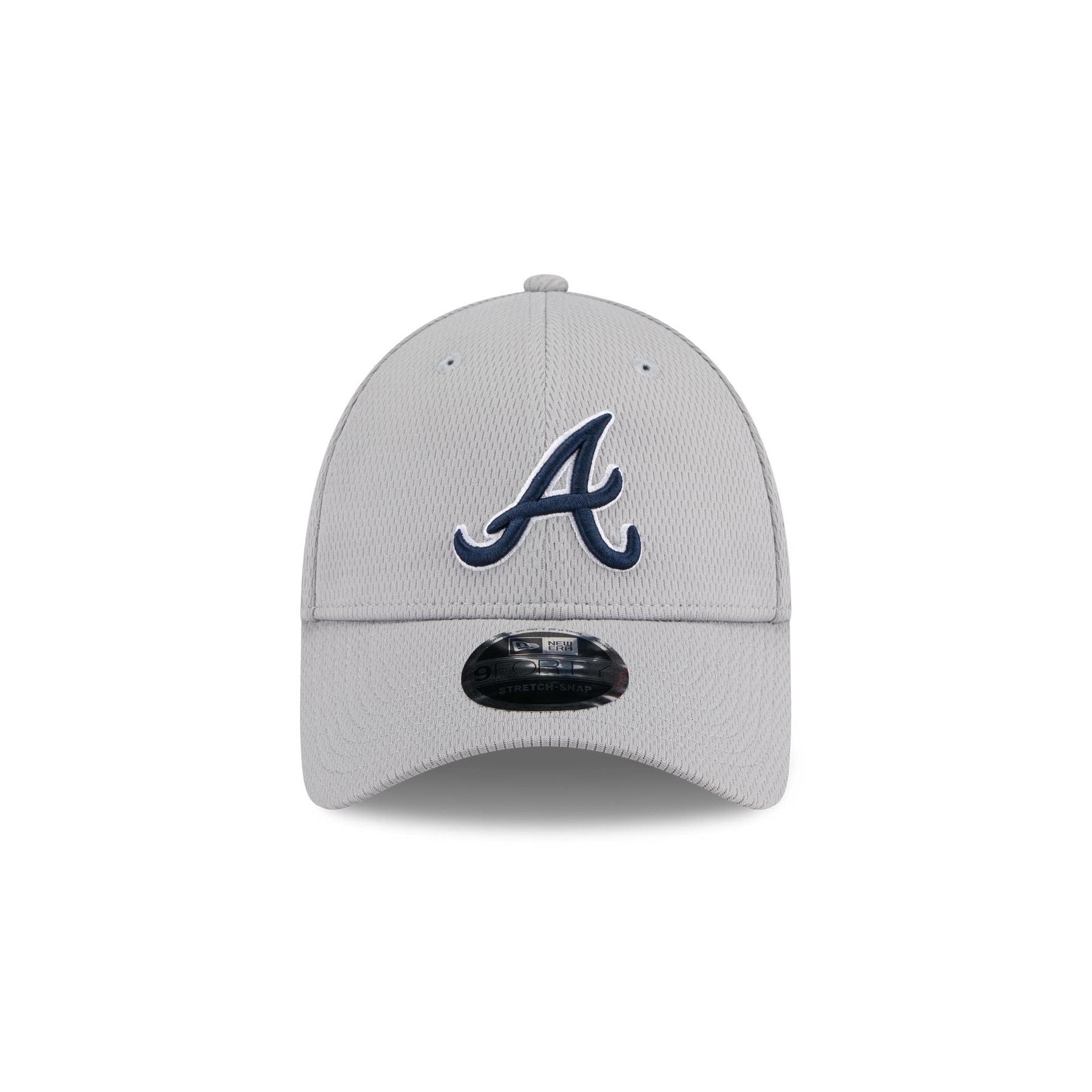 The Atlanta Braves Gray 9FORTY Stretch Snap Cap features an embroidered Braves logo at the front panels with a snapback closure at the rear and a gray undervisor.