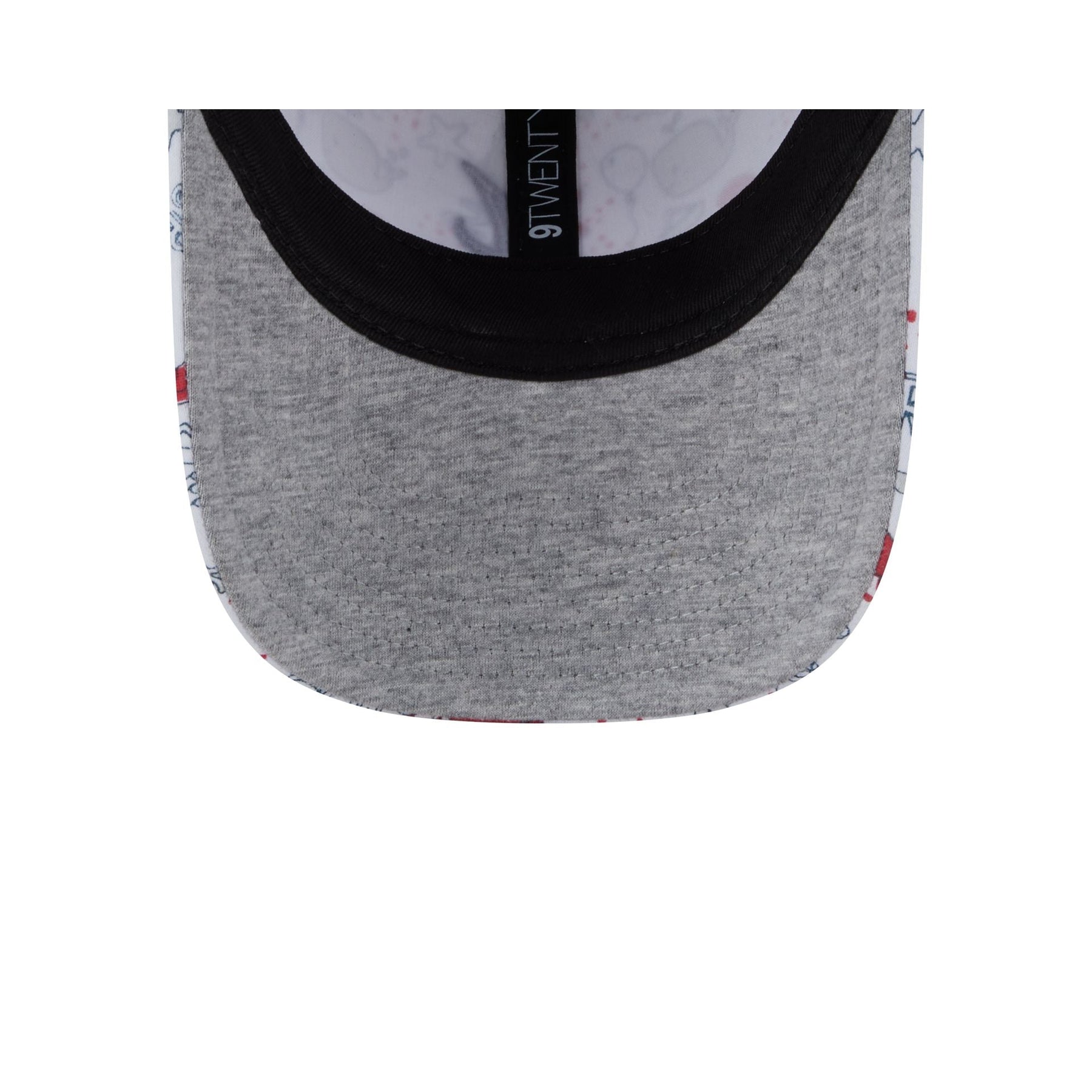 The Atlanta Braves Kids Ocean 9TWENTY Adjustable Cap features an embroidered Braves logo at the front panels with a nautical design throughout the cap. Additional details include a stretch strap closure at the rear and a gray undervisor.