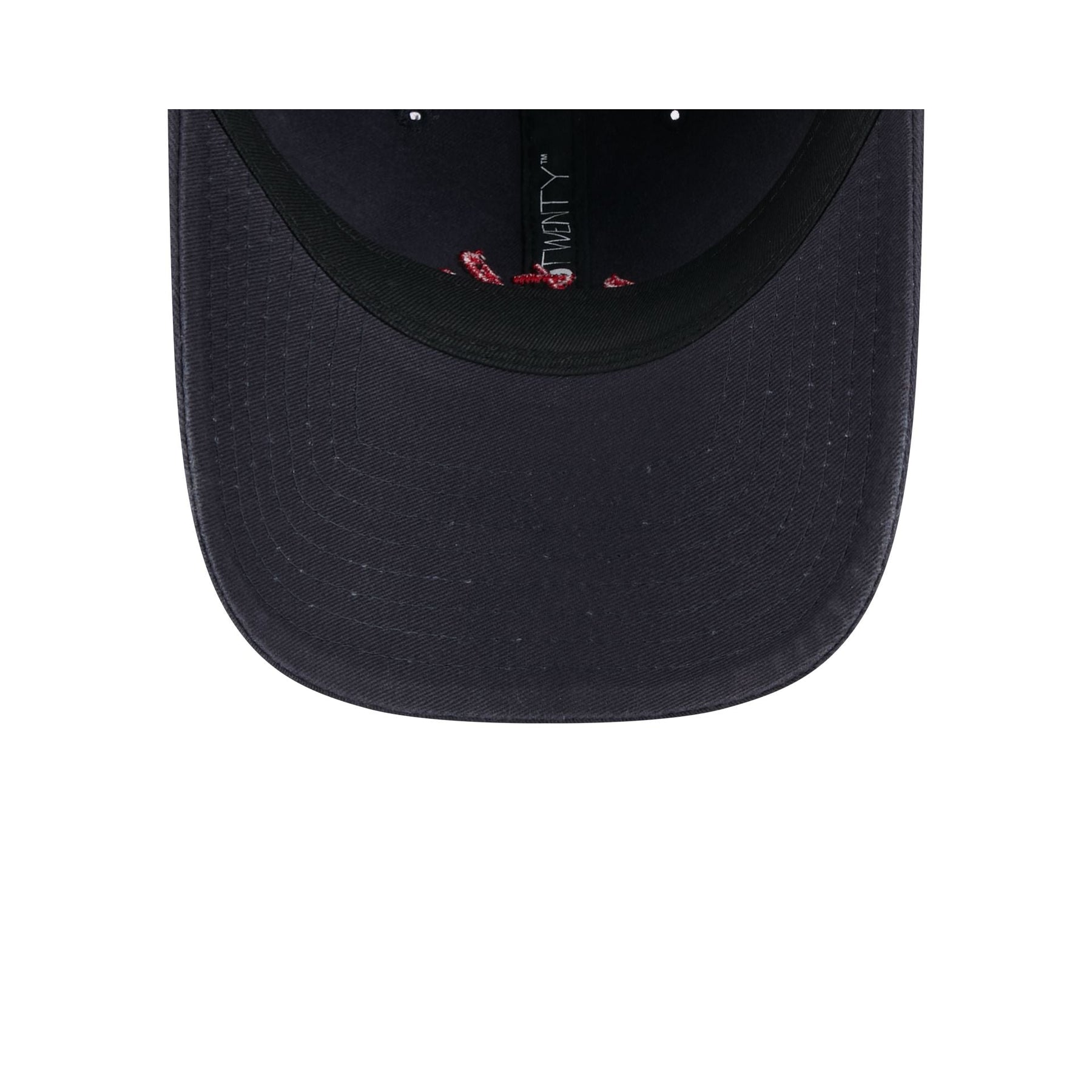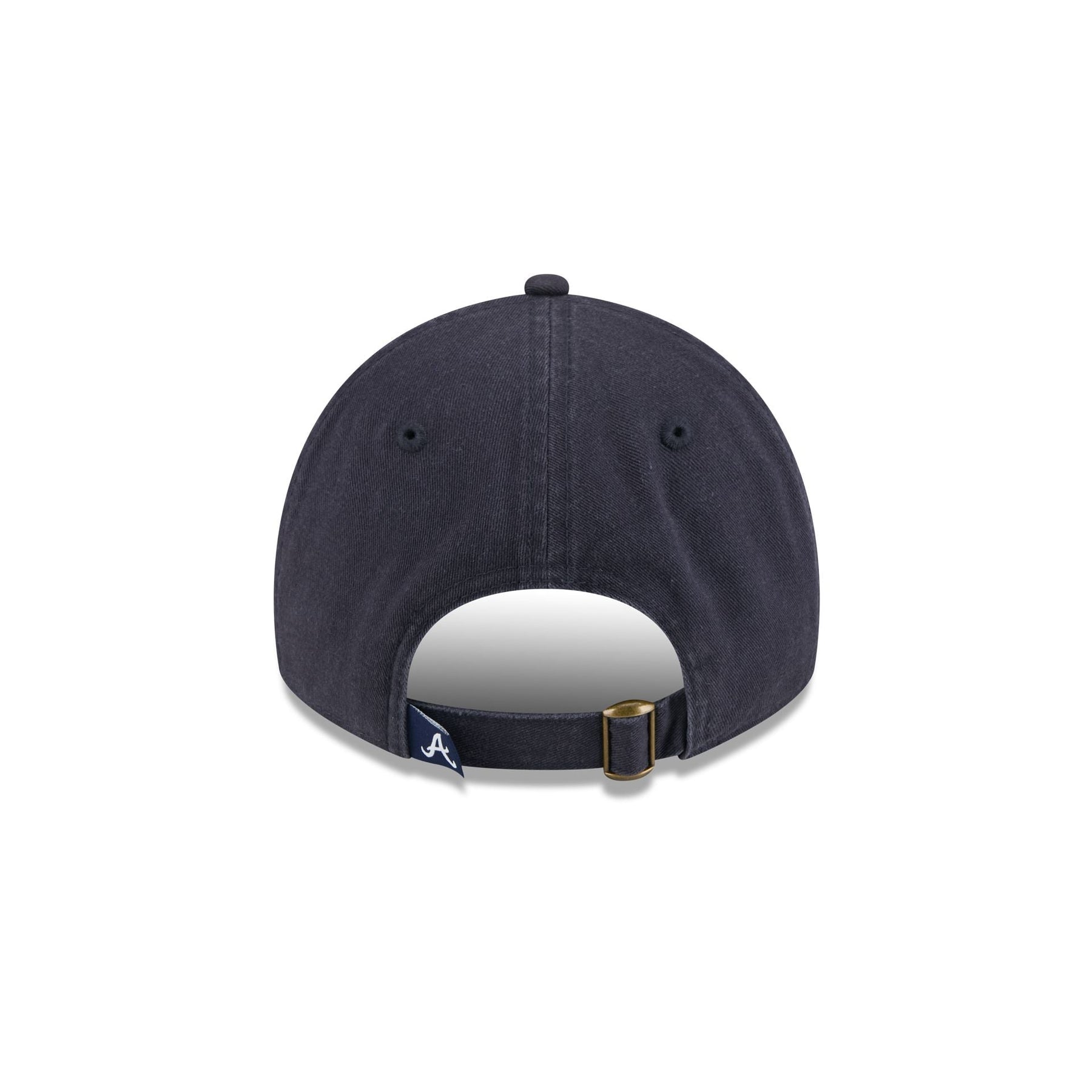 The Atlanta Braves Women's Script 9TWENTY Adjustable Cap features an embroidered Braves script at the front panels with a team tag on an adjustable D-Ring closure at the rear.