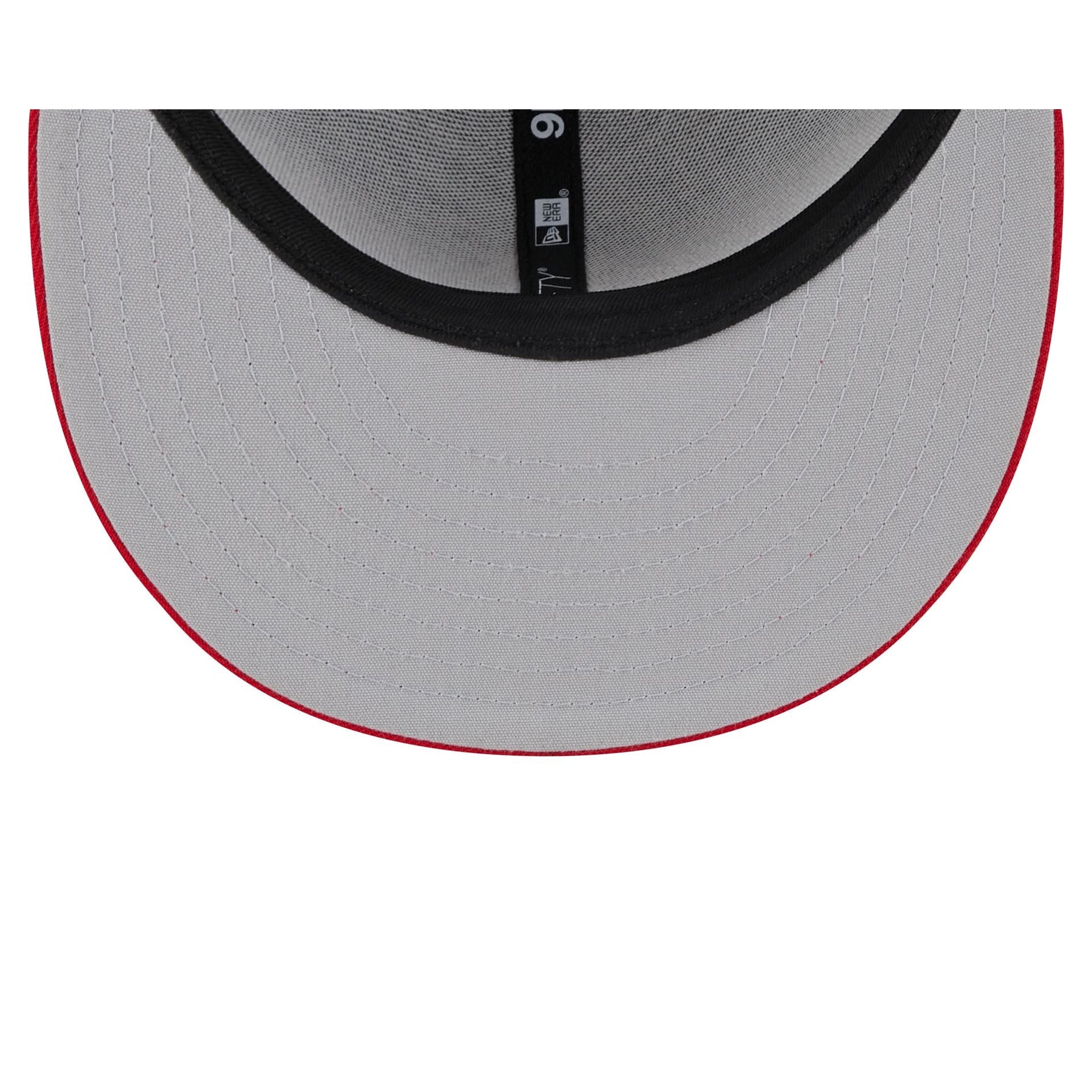 The Chicago White Sox 2025 Batting Practice 9FIFTY Snapback features an embroidered White Sox logo at the front panels with a matching snapback closure at the rear. Additional details include a pivot knit fabrication, a red visor, and a gray undervisor.