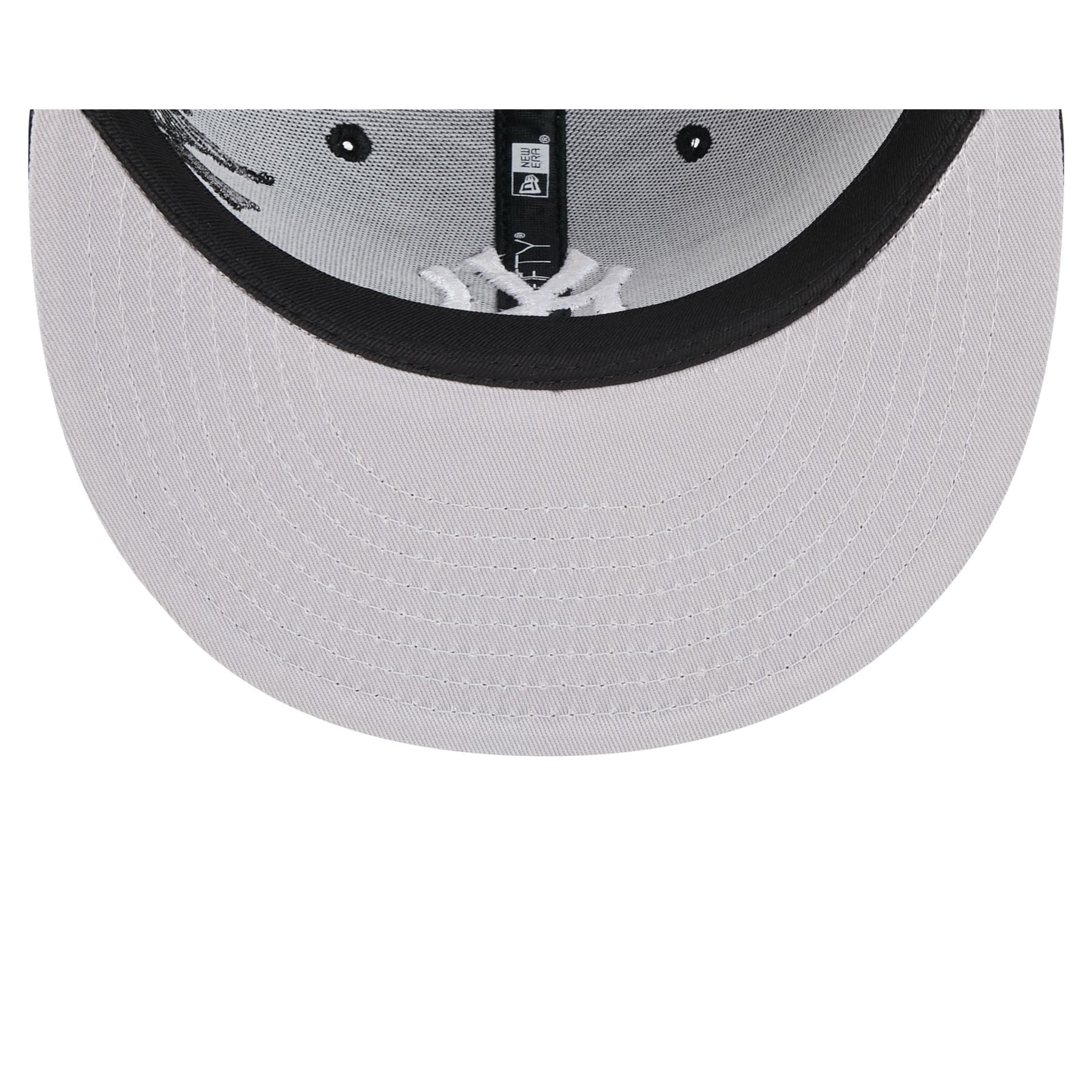 The New York Yankees City Art 9FIFTY Snapback features an embroidered Yankees black and white logo at the front panels and an embroidered city banner with art at the right-wear side. Additional details include a snapback closure at the rear and a gray undervisor.