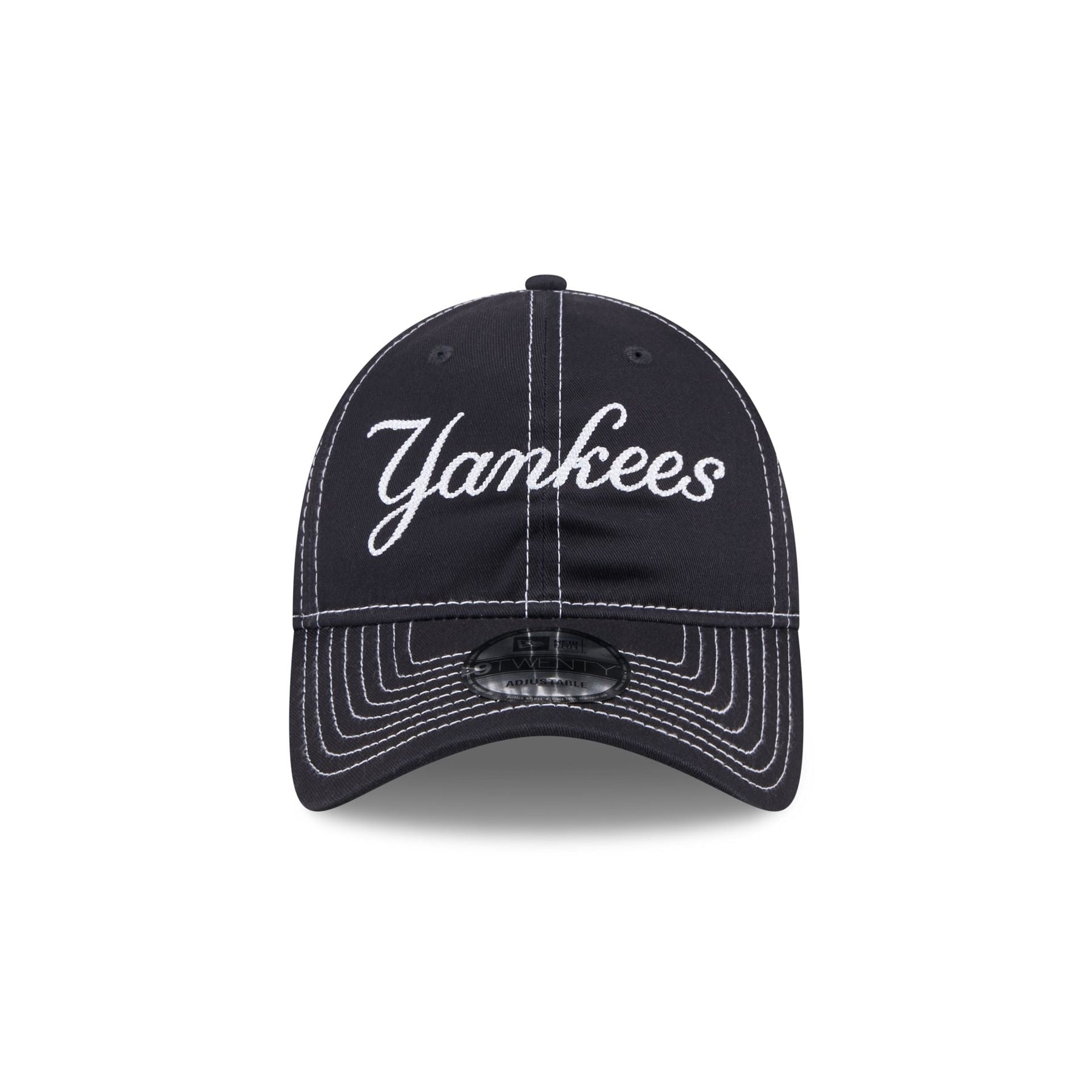 The New York Yankees Team Stitch 9TWENTY Adjustable Cap features an embroidered Yankees Cooperstown wordmark at the front panels with an adjustable D-Ring closure at the rear and a navy undervisor.